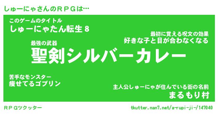 | 男性向けラノベタイトル風あだ名 | 『しゅーにゃの憂鬱』 |