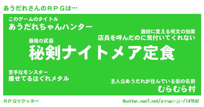 | 意味不明あだ名 | 『ペロリンあうだれ』『永久保存あうだれ』 |