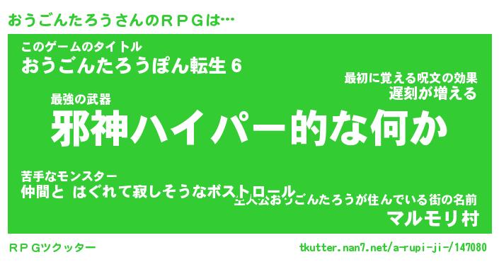 | 男性向けラノベタイトル風あだ名 | 『オウゴンタロウアートオンライン』 |