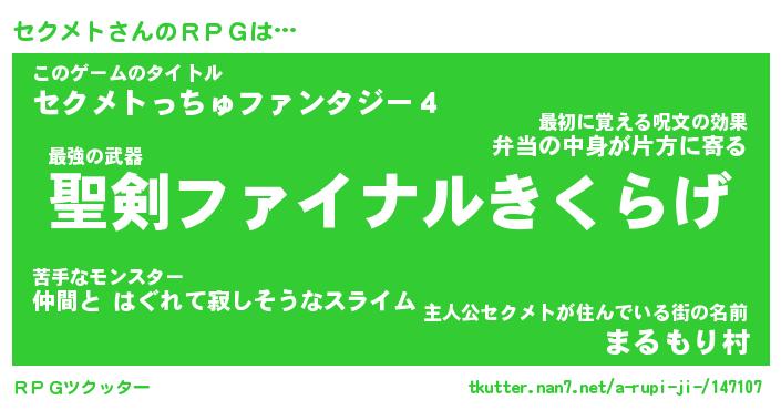 | 意味不明あだ名 | 『ペロリンセクメト』『永久保存セクメト』 |