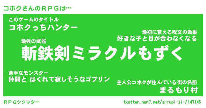 | ファンタジー風あだ名 | 『コホフェル』『エターナルコホクー』 |