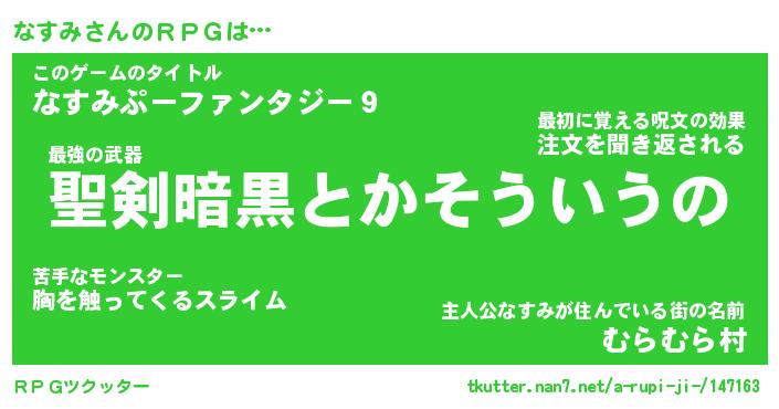 | ファンタジー風あだ名 | 『ナスフェル』『エターナルナスミー』 |