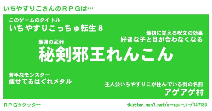 | ヒーロー風カッコイイあだ名 | 『スーパーイチヤスリコ』『幻影騎士イチ』 |