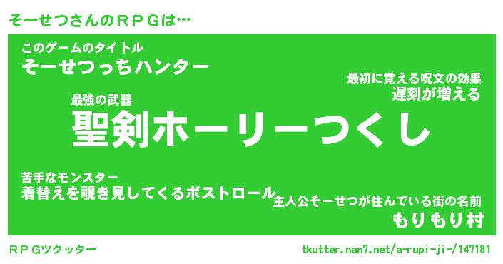 | 伝説のあだ名 | 『伝説の傭兵そーせつ』 |