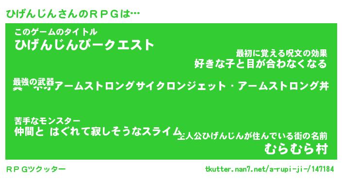 | ファンタジー風あだ名 | 『ヒゲフェル』『エターナルヒゲンジンー』 |
