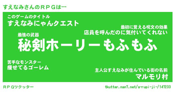 | ファンタジー風あだ名 | 『スエフェル』『エターナルスエナミー』 |
