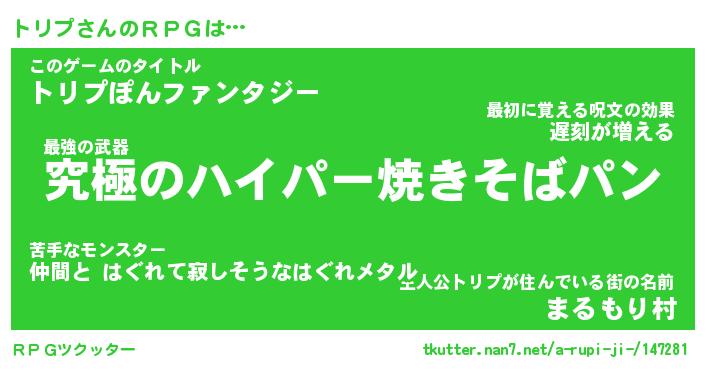 | ファンタジー風あだ名 | 『トリフェル』『エターナルトリプー』 |