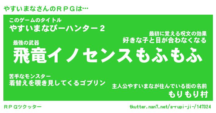 | ファンタジー風あだ名 | 『ヤスフェル』『エターナルヤスイマナー』 |
