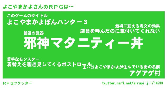 | 伝説のあだ名 | 『封印されしスナイパーよこやまかよ』 |