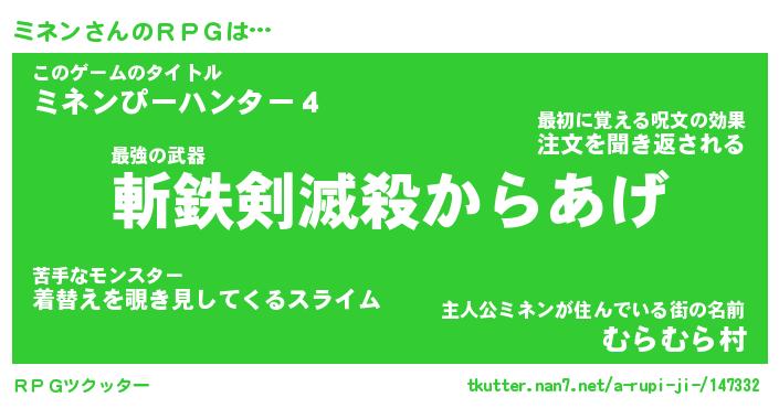 | 胡散臭い通販商品みたいなあだ名 | 『必ず成功する霊験あらたかなお札…その名も「ミネン」』 |