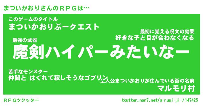 | ヒーロー風カッコイイあだ名 | 『スーパーマツイカオリ』『炎刃騎士マツ』 |
