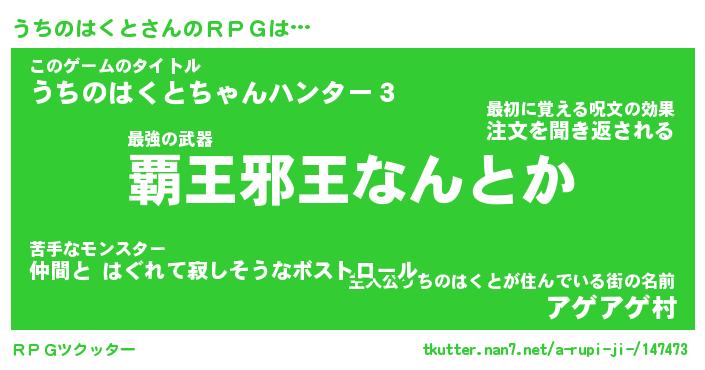 | 伝説のあだ名 | 『封印されし傭兵うちのはくと』 |