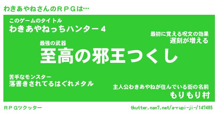 | ファンタジー風あだ名 | 『ワキフェル』『エターナルワキアヤネー』 |