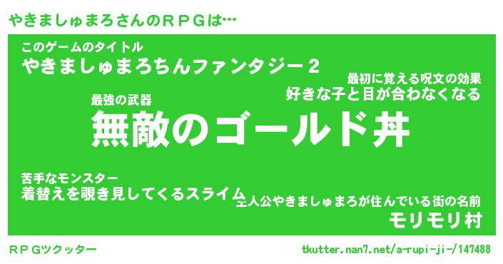 | 伝説のあだ名 | 『封印されしスナイパーやきましゅまろ』 |