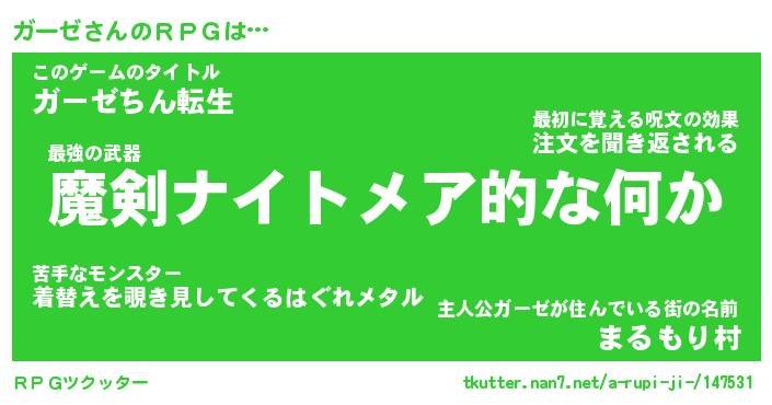 | ファンタジー風あだ名 | 『ガーフェル』『エターナルガーゼー』 |