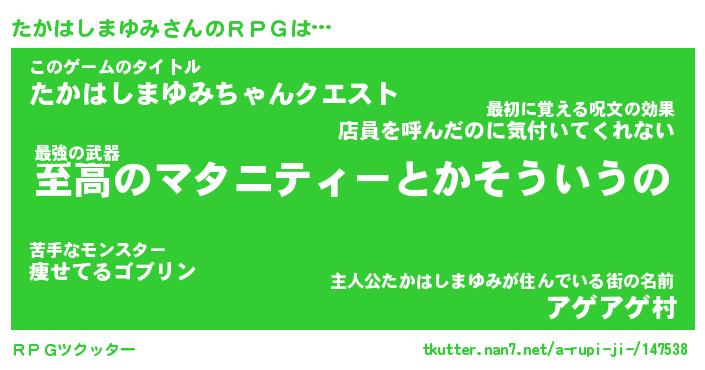 | 胡散臭い通販商品みたいなあだ名 | 『モテモテ間違いなし霊験あらたかなお札…その名も「たかはしまゆみ」』 |
