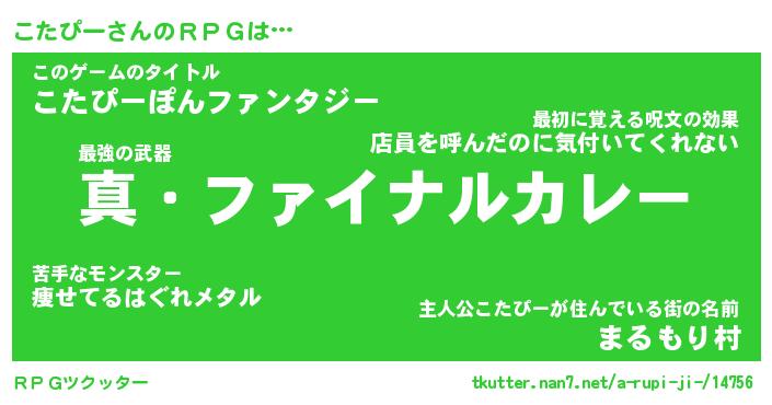 | ファンタジー風あだ名 | 『コタフェル』『エターナルコタピーー』 |