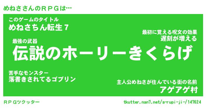 | ファンタジー風あだ名 | 『メネフェル』『エターナルメネサー』 |
