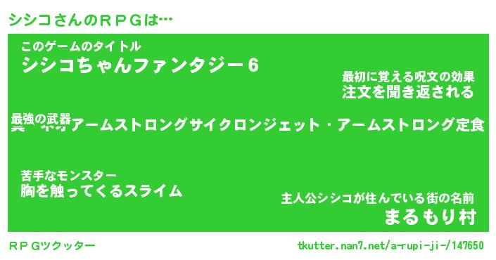 | 伝説のあだ名 | 『封印されし竜騎士シシコ』 |