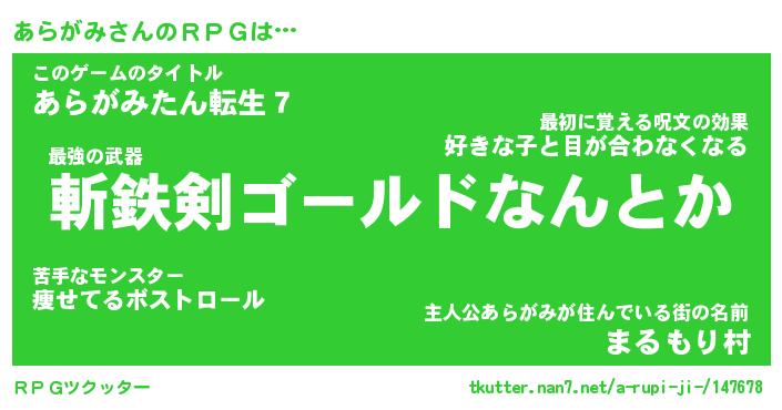 | 胡散臭い通販商品みたいなあだ名 | 『必ず成功する霊験あらたかなお札…その名も「あらがみ」』 |