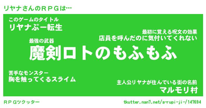 | ファンタジー風あだ名 | 『リヤフェル』『エターナルリヤナー』 |