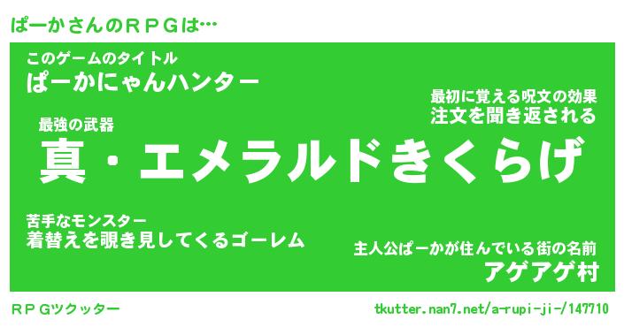 | 男性向けラノベタイトル風あだ名 | 『パーカアートオンライン』 |