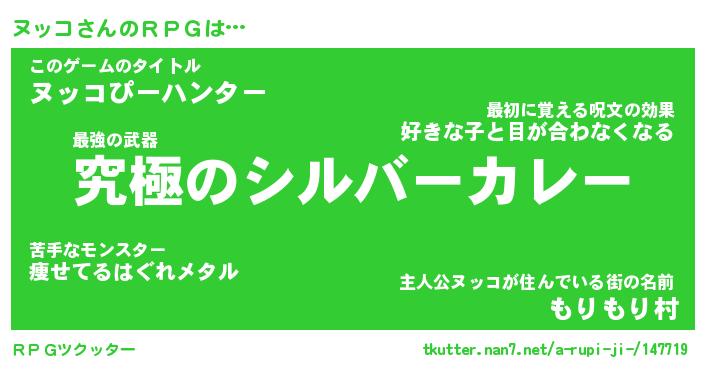 | 男性向けラノベタイトル風あだ名 | 『ヌッコの憂鬱』 |