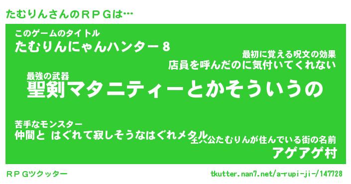 | ファンタジー風あだ名 | 『タムフェル』『エターナルタムリンー』 |