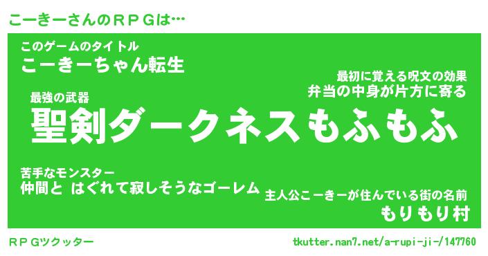 | 男性向けラノベタイトル風あだ名 | 『こーきーの憂鬱』 |