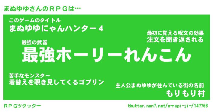 | ファンタジー風あだ名 | 『マヌフェル』『エターナルマヌユユー』 |