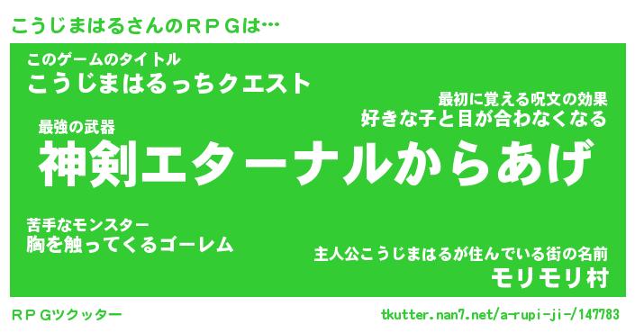 | 胡散臭い通販商品みたいなあだ名 | 『モテモテ間違いなし水晶球…その名も「こうじまはる」』 |
