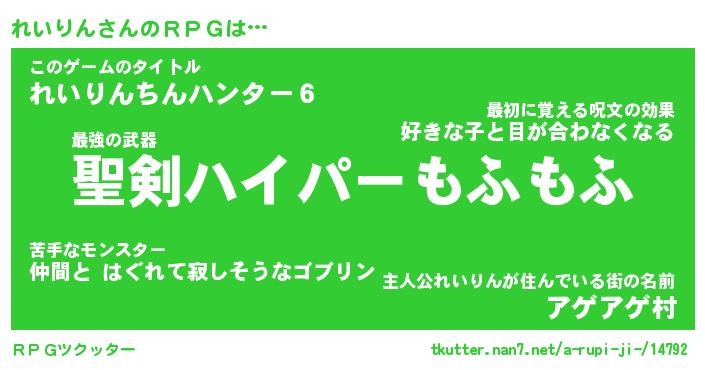 | 男性向けラノベタイトル風あだ名 | 『れいりんの憂鬱』 |