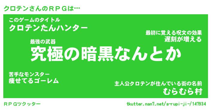 | ファンタジー風あだ名 | 『クロフェル』『エターナルクロテンー』 |