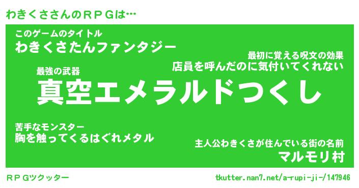 | ファンタジー風あだ名 | 『ワキフェル』『エターナルワキクサー』 |