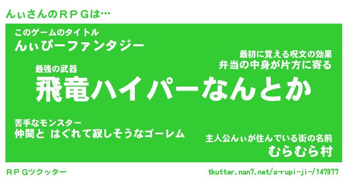 | 伝説のあだ名 | 『封印されし竜騎士んぃ』 |