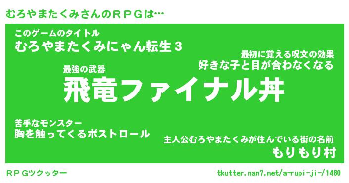 | 伝説のあだ名 | 『封印されし竜騎士むろやまたくみ』 |