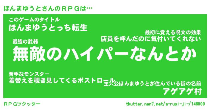 | 男性向けラノベタイトル風あだ名 | 『ホンマユウトアートオンライン』 |