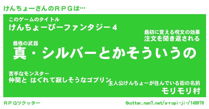 | ファンタジー風あだ名 | 『ケンフェル』『エターナルケンチョーー』 |
