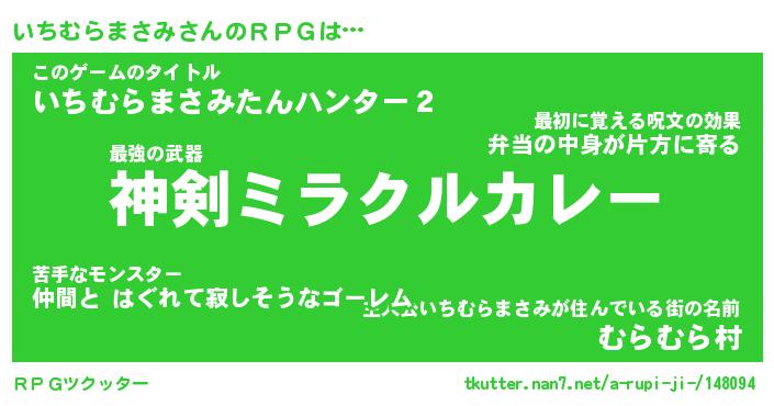 | 伝説のあだ名 | 『不死鳥の竜騎士いちむらまさみ』 |