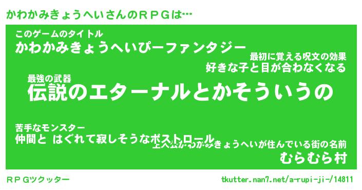 | 男性向けラノベタイトル風あだ名 | 『かわかみきょうへいの憂鬱』 |
