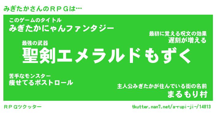 | 男性向けラノベタイトル風あだ名 | 『みぎたかの憂鬱』 |