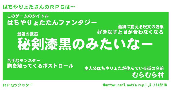 | 胡散臭い通販商品みたいなあだ名 | 『必ず成功する霊験あらたかなお札…その名も「はちやりょた」』 |