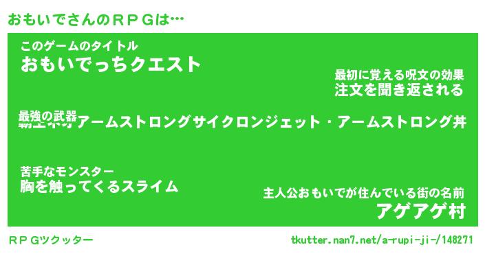 | 胡散臭い通販商品みたいなあだ名 | 『億万長者になれるブレスレット…その名も「おもいで」』 |