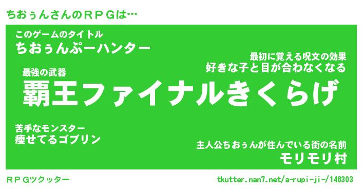 | 伝説のあだ名 | 『封印されし傭兵ちおぅん』 |