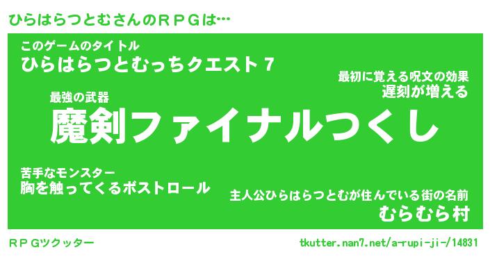 | 伝説のあだ名 | 『伝説の竜騎士ひらはらつとむ』 |