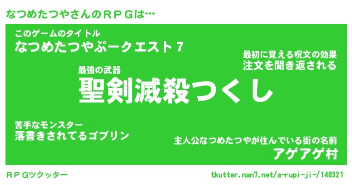 | 胡散臭い通販商品みたいなあだ名 | 『必ず成功する霊験あらたかなお札…その名も「なつめたつや」』 |