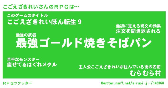 | 胡散臭い通販商品みたいなあだ名 | 『モテモテ間違いなし霊験あらたかなお札…その名も「こごえざきれい」』 |
