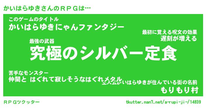| 男性向けラノベタイトル風あだ名 | 『かいはらゆきの憂鬱』 |