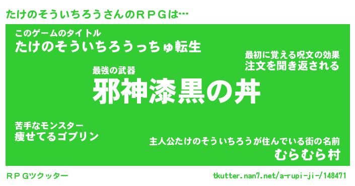| 伝説のあだ名 | 『封印されしスナイパーたけのそういちろう』 |
