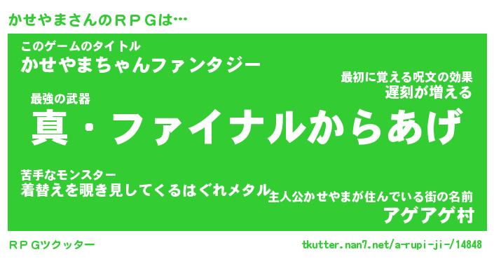 | ファンタジー風あだ名 | 『カセフェル』『エターナルカセヤマー』 |
